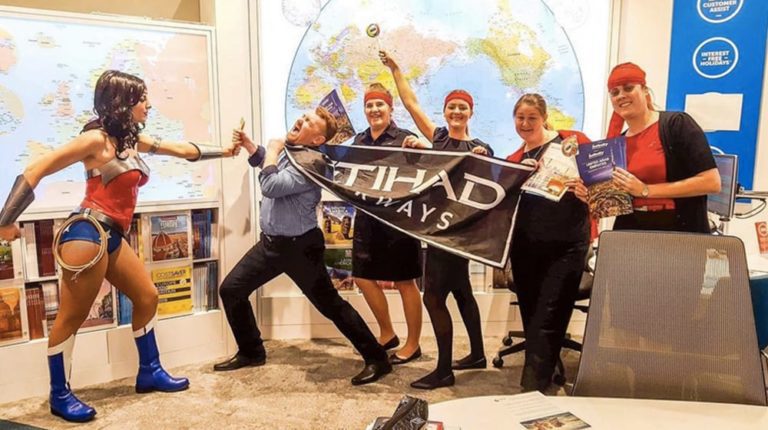 SUPER TRAVEL AGENTS: Wonder Woman & Batman stop by Aussie agencies