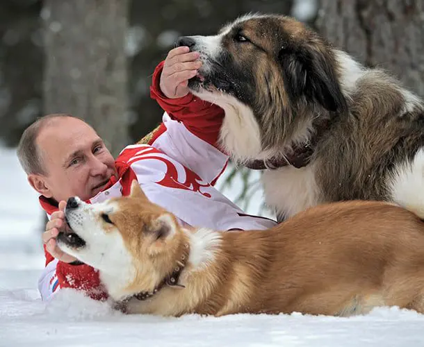Putin just loves playing with dogs.